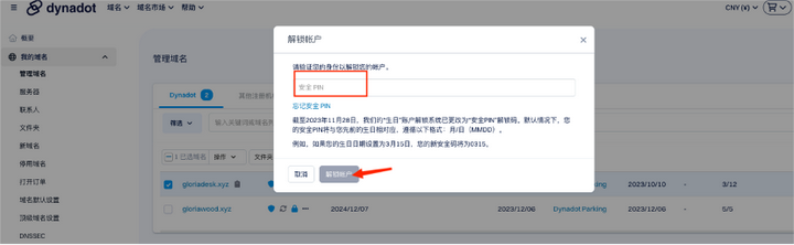 账户解锁,输入安全PIN码。