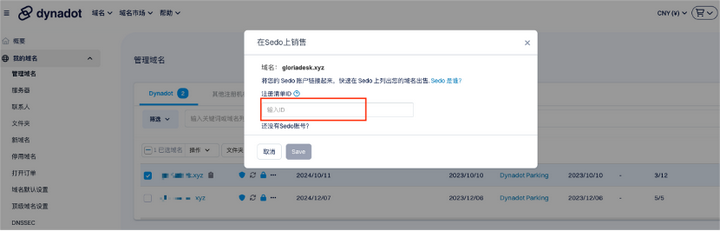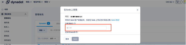 按照要求输入Sedo Listing ID。