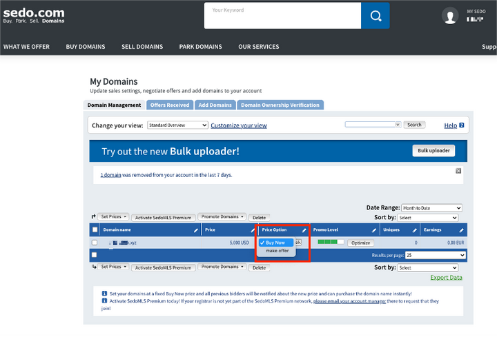 在Sedo上销售域名