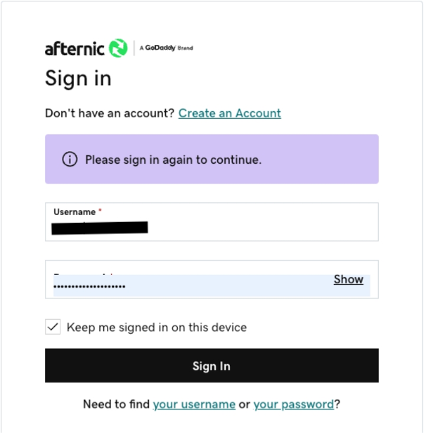 点击登录,在跳转界面输入账号和密码登录Afternic账户(如无则需创建新账户),同意Afternic用户协议。