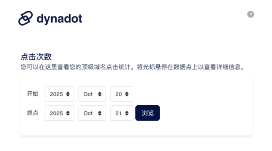 选择完成后,点击浏览,下方将以图表的形式显示对应域名的点击情况。注意:如果时间段间隔大于一个月,数据统计将按月计算。