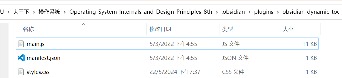 新建一个名为obsidian-dynamic-toc的文件夹,将刚刚下载的三个文件复制进去