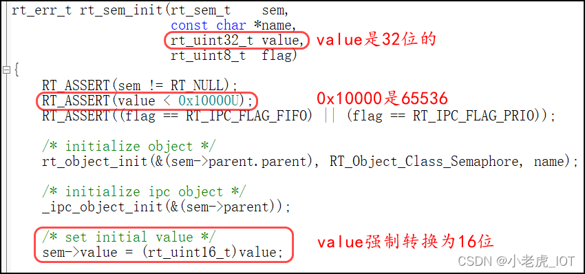 只看函数声明,信号量的初始值value是32位,但实际是16位的: