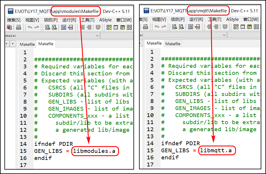 3.1.4、修改app/modules/Makefile和app/mqtt/Makefile,替换为libxxx.a