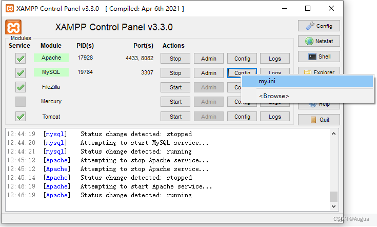 (3)打开面板XAMPP Control Panel时出现的端口报错记下来,后面要改。