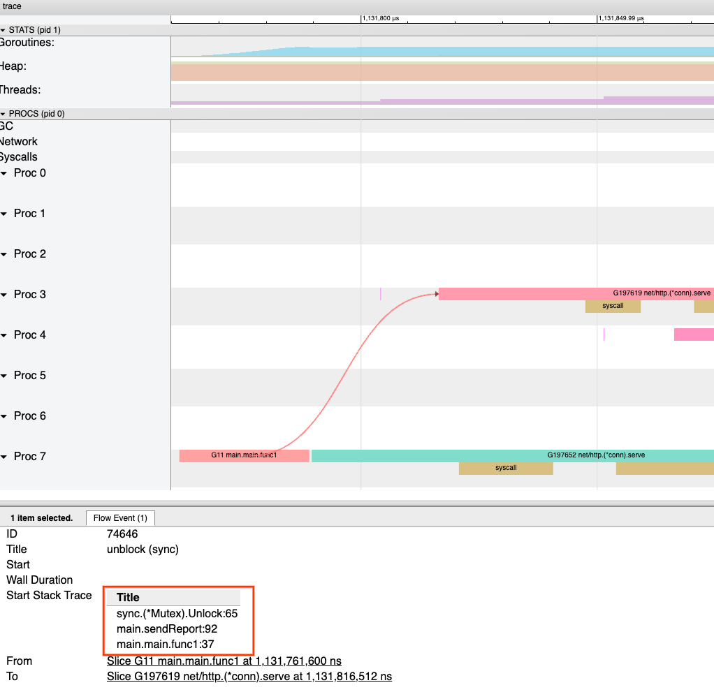 这对于调试延迟问题特别有用,能清楚地看到 goroutine 什么时候在执行,更重要的是,什么时候没在执行。