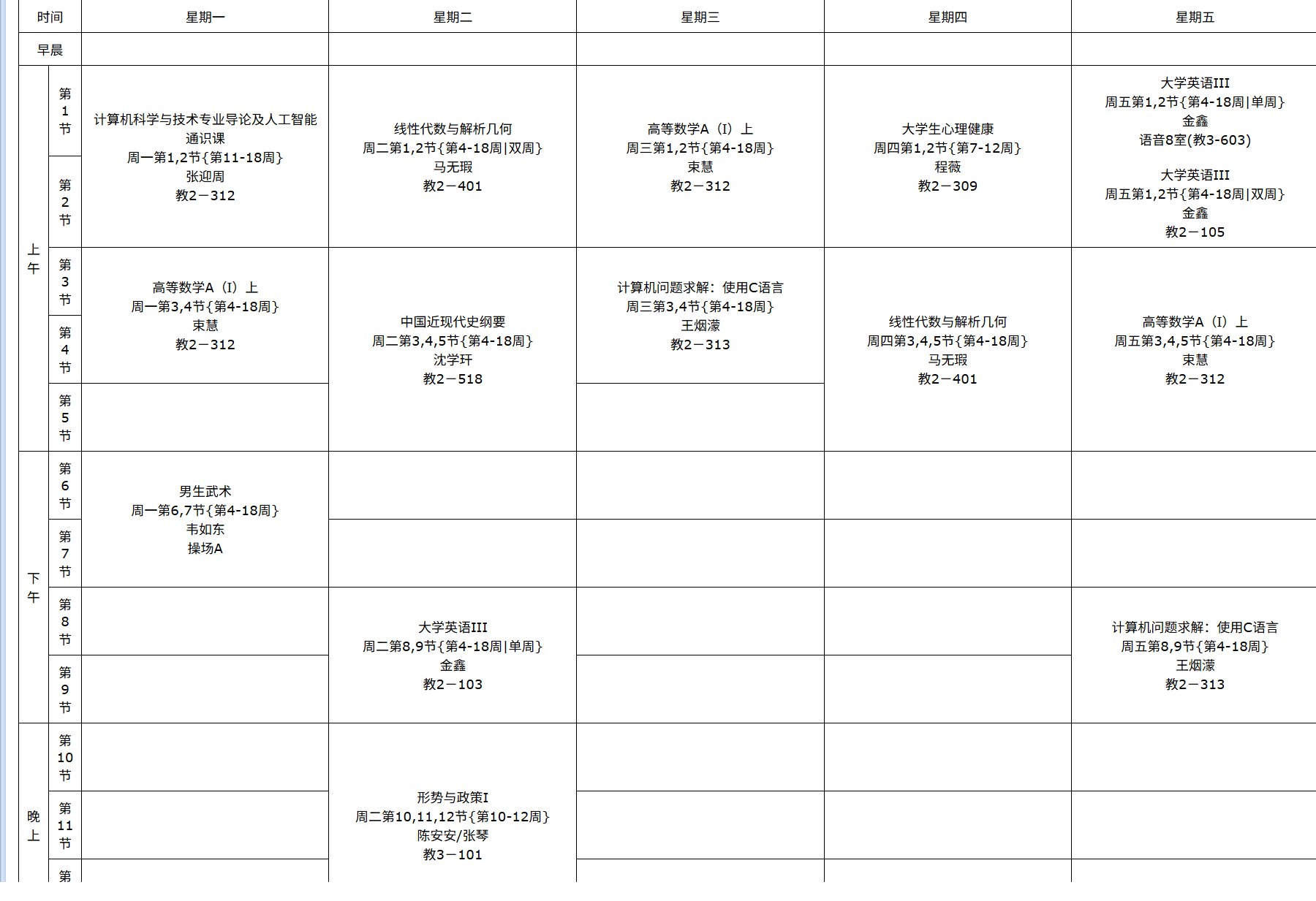 - 正式开学: 周一到周五18:30-21:00 & 周三周四15:00-17:20