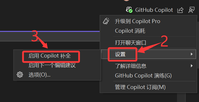 第一步,点击右上角的“GitHub Copliot"按键