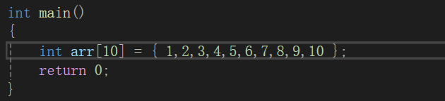 • 数组的初始化需要使用{ }来存放元素,元素的个数不能超过[ ]内常量的值