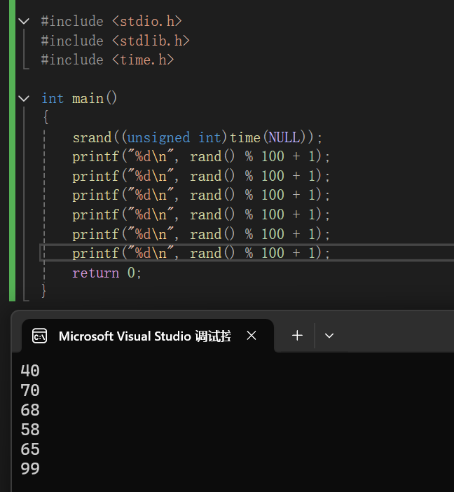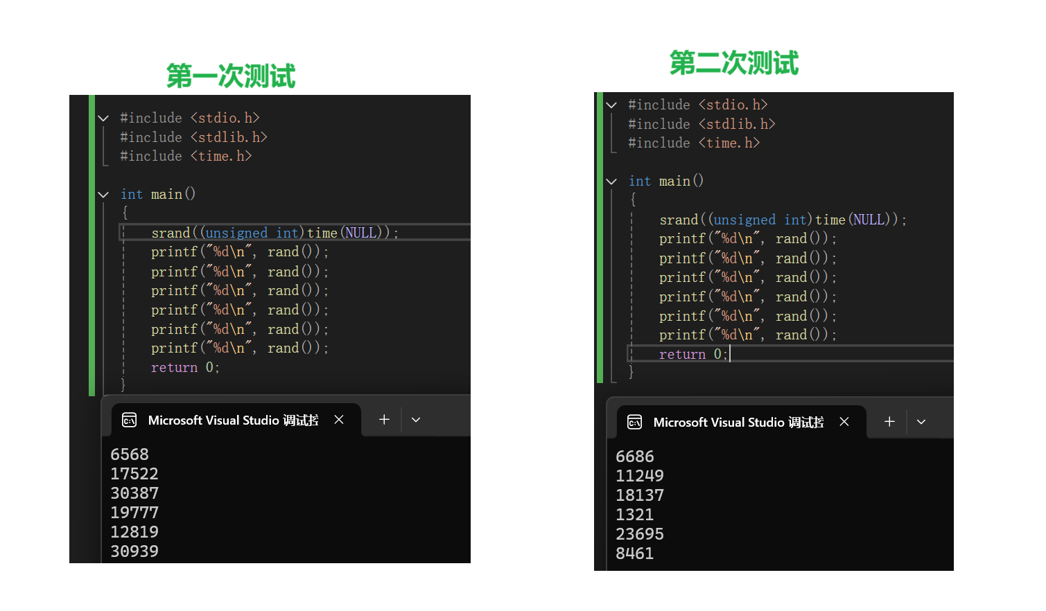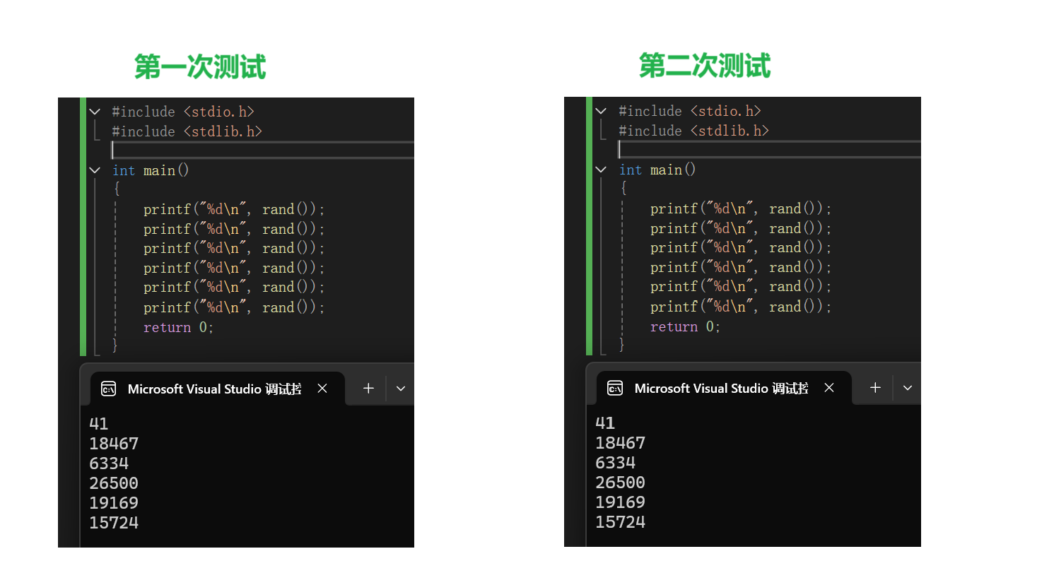 发现两次执行的结果居然是一模一样的。这是因为rand的种子默认是1,两次使用并没有改变种子。