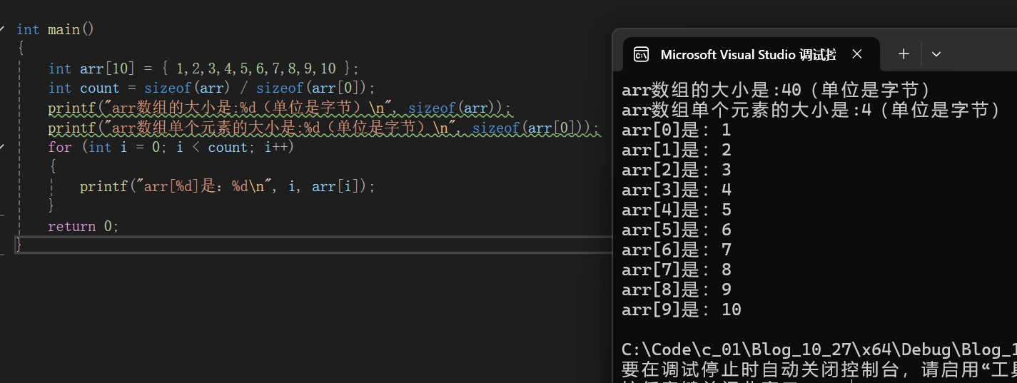 可以用sizeof()得到,由此也实现了求出数组元素个数的方式,即sizeof(arr) / sizeof(arr[0])求得。