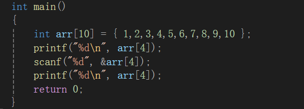 代码运行后打印了arr中下标为4的元素,即5。在对下标为4的元素输入了8后,打印出来的结果又变成了8。
