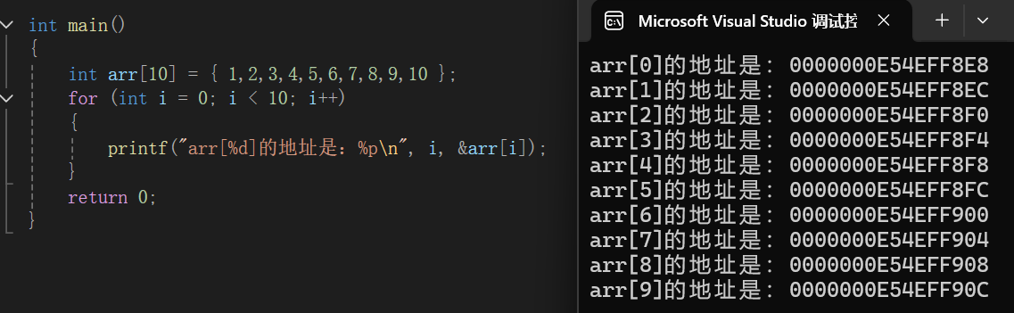 数组中元素在内存中的存放是连续的,并且存放的地址通常是由低到高的。这是一个重要的特性。