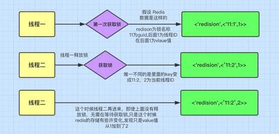 guid + 当前线程的ID。后面的value是就和可重入加锁有关。value代表同一客户端调用lock方法的次数,即可重入计数统计。