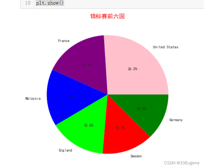 plt.title("锦标赛前六国",color = "red",fontsize = 15)