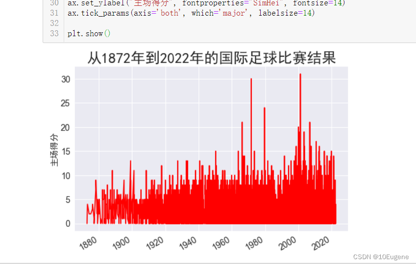 ax.set_title("从1872年到2022年的国际足球比赛主客场分数对比", fontproperties="SimHei", fontsize=24)