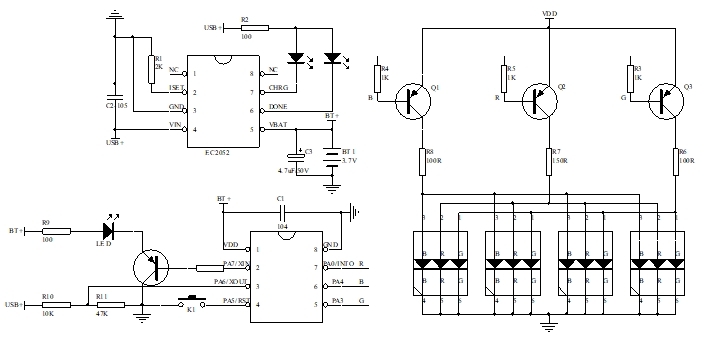 白光模式:通过单击按键K1控制5050RGB灯珠中的白光LED(WL),每次开启自动激活10分钟定时关闭功能。若在定时期间插入USB充电,则立即解除定时限制。