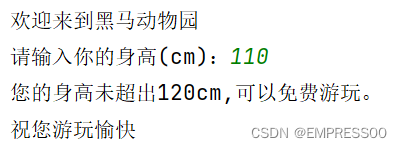 print("您的身高未超出120cm,可以免费游玩。")