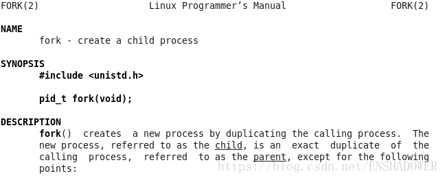 - 使用 fork系统调用 通过 复制调用 创建一个子进程,调用进程为父进程,创建出来的新进程称为子进程,fork函数有两个返回值。父进程返回子进程的进程PID,子进程返回0.