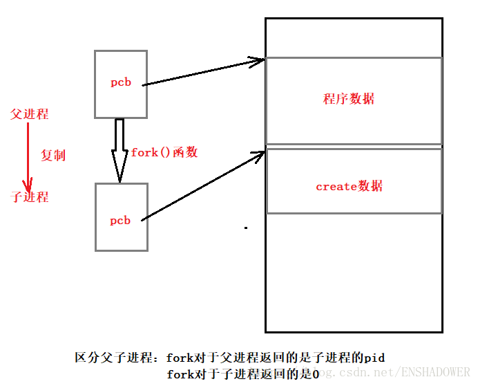 - 父进程创建了子进程,所以父子进程的代码段是完全一样的,即他们运行的程序是一样的,但是他们的数据并不共用,数据是各自开辟空间,私有一份。