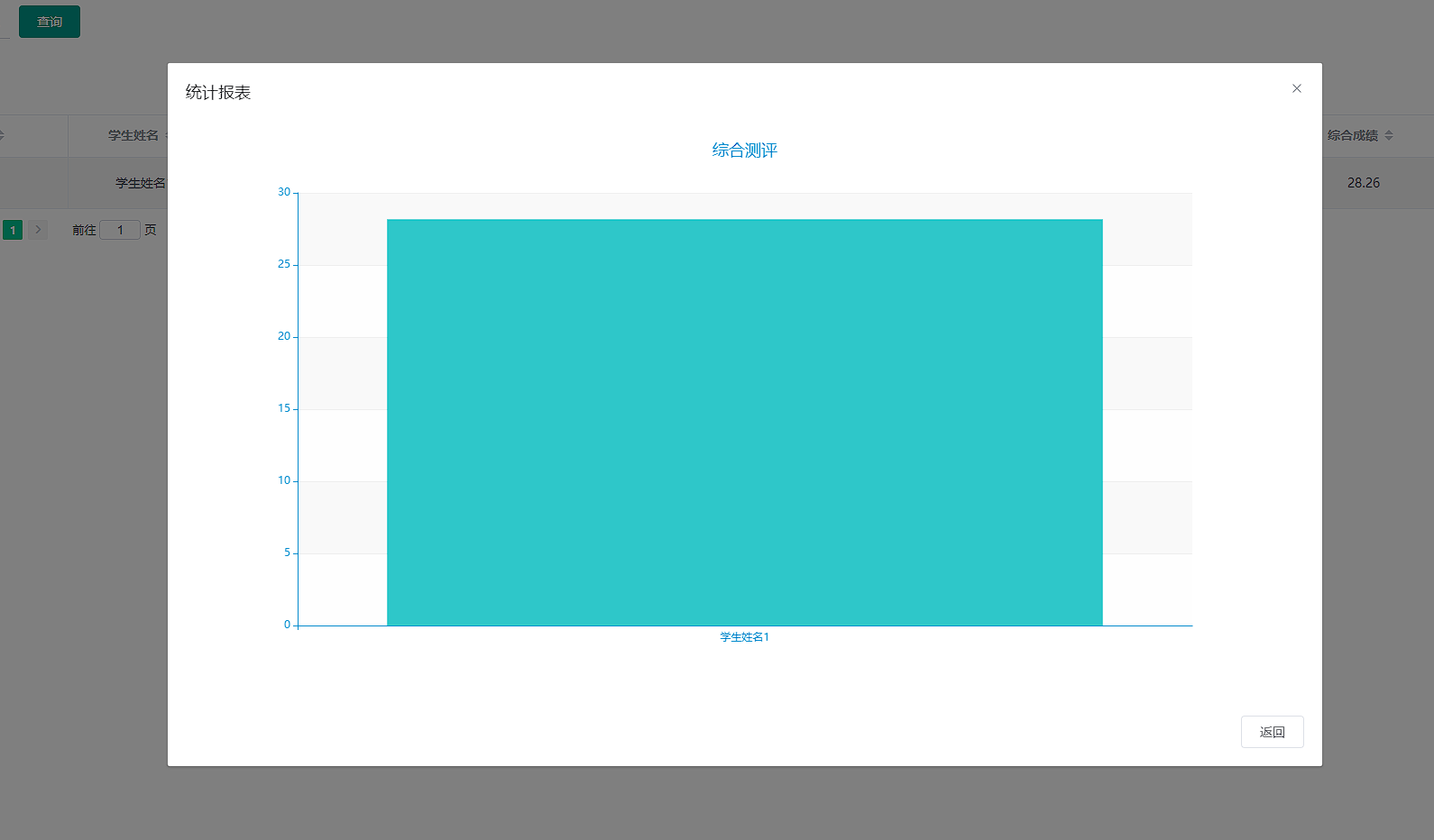 (4)在综合测评管理页面,管理员只有查看详情、修改、删除和查看统计图的权限,新增的权限是在教师的手上。