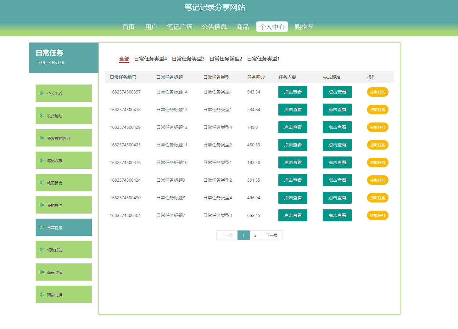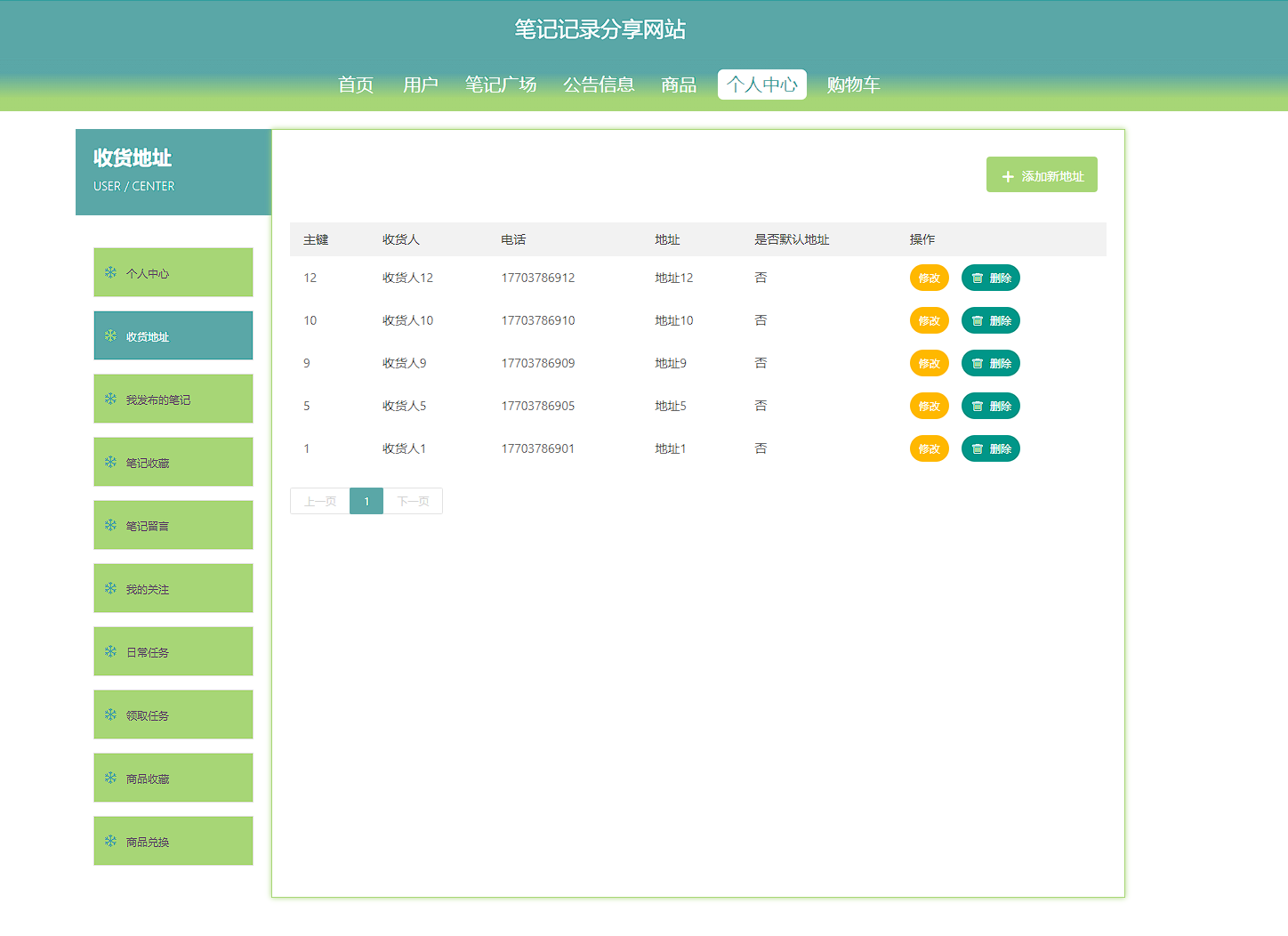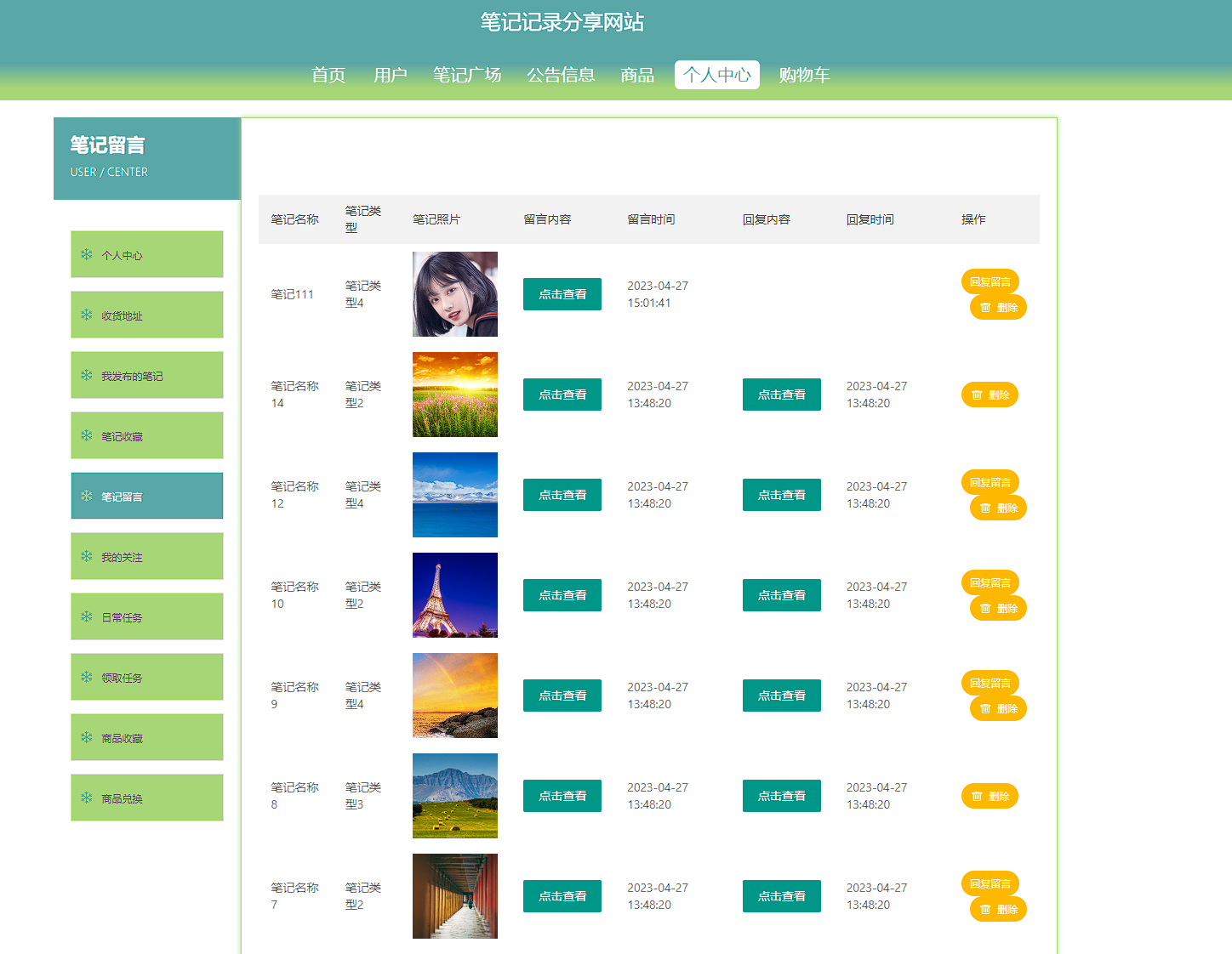 本次开发的笔记记录分享网站实现了收货地址管理、笔记广场管理、笔记收藏管理、笔记留言管理、购物车管理、字典表管理、公告信息管理、我的关注管理、日常任务管理、领取任务管理、商品管理、商品收藏管理、商品评价管理、商品兑换管理、用户管理、管理员管理等功能。
