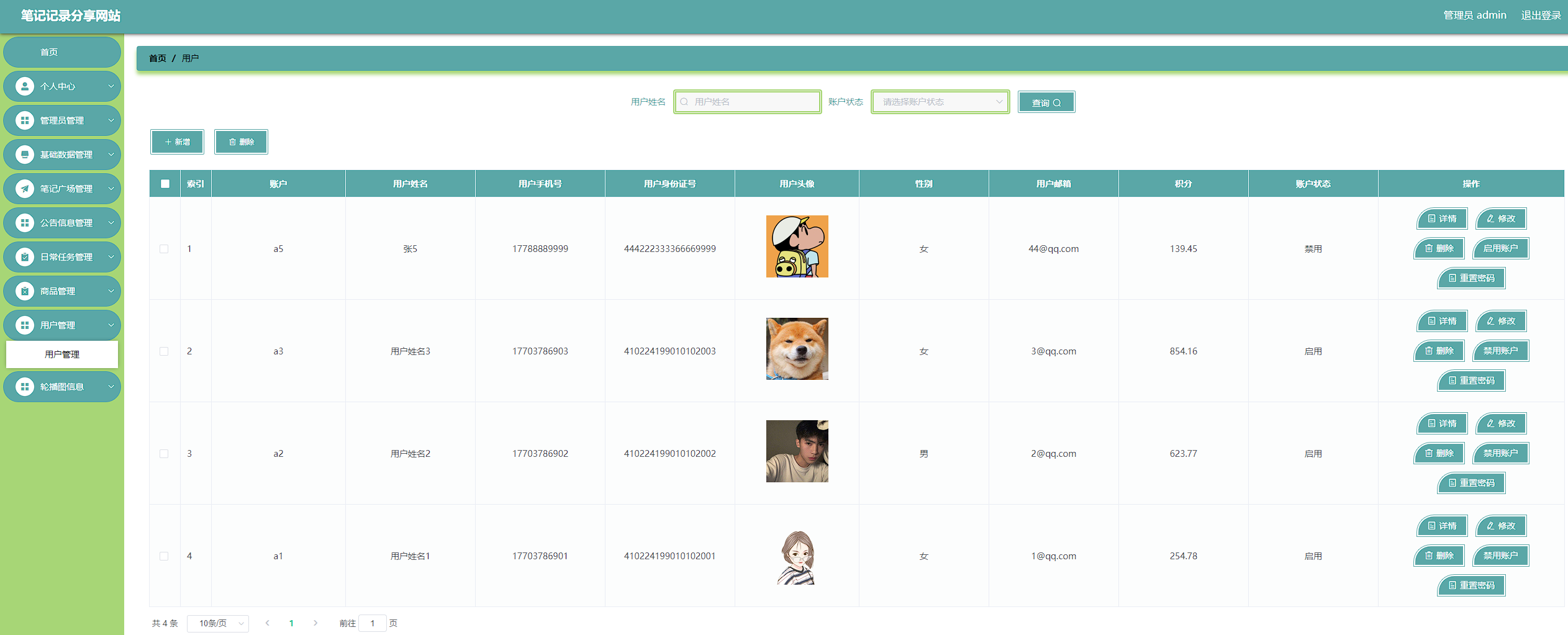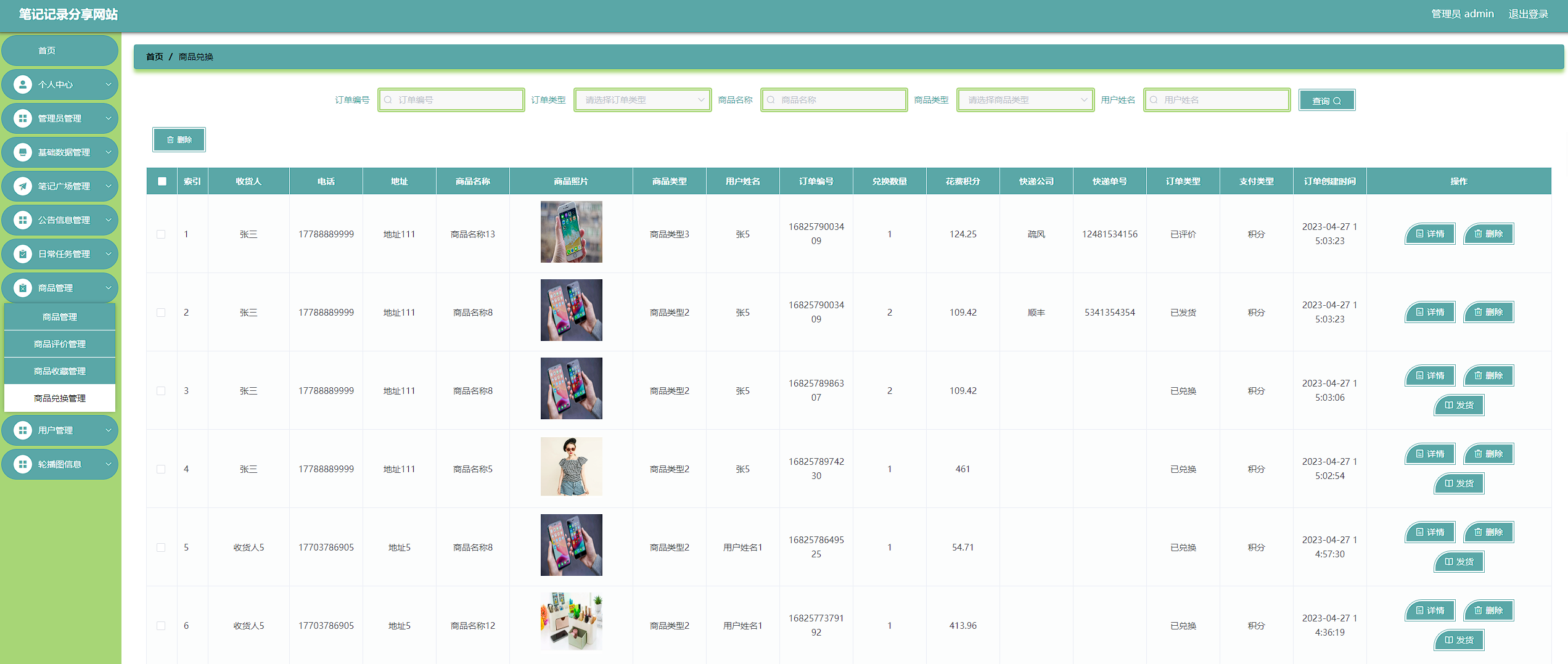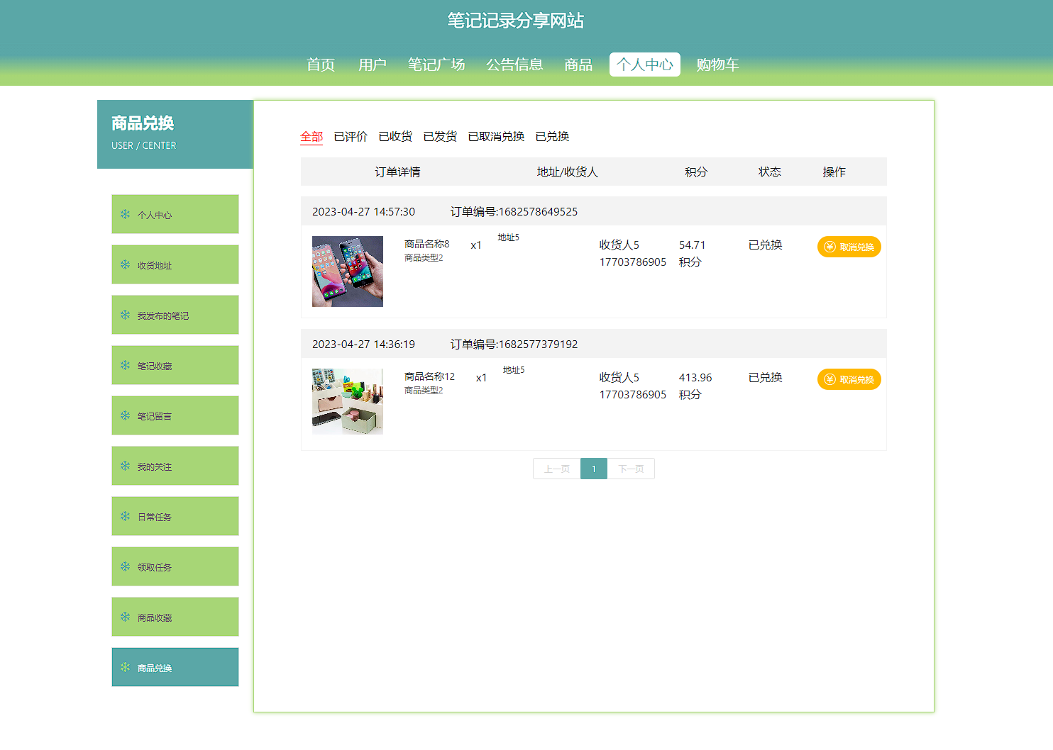 本次开发的笔记记录分享网站实现了收货地址管理、笔记广场管理、笔记收藏管理、笔记留言管理、购物车管理、字典表管理、公告信息管理、我的关注管理、日常任务管理、领取任务管理、商品管理、商品收藏管理、商品评价管理、商品兑换管理、用户管理、管理员管理等功能。