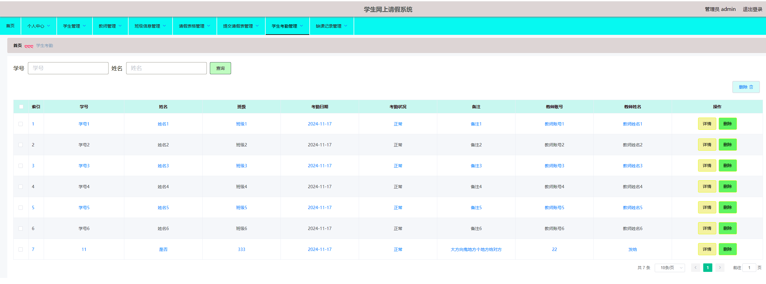 本站是一个B/S模式系统,采用Spring Boot框架,MYSQL数据库设计开发,充分保证系统的稳定性。系统具有界面清晰、操作简单,功能齐全的特点,使得学生网上请假系统管理工作系统化、规范化。本系统的使用使管理人员从繁重的工作中解脱出来,实现无纸化办公,能够有效的提高学生网上请假系统管理效率。