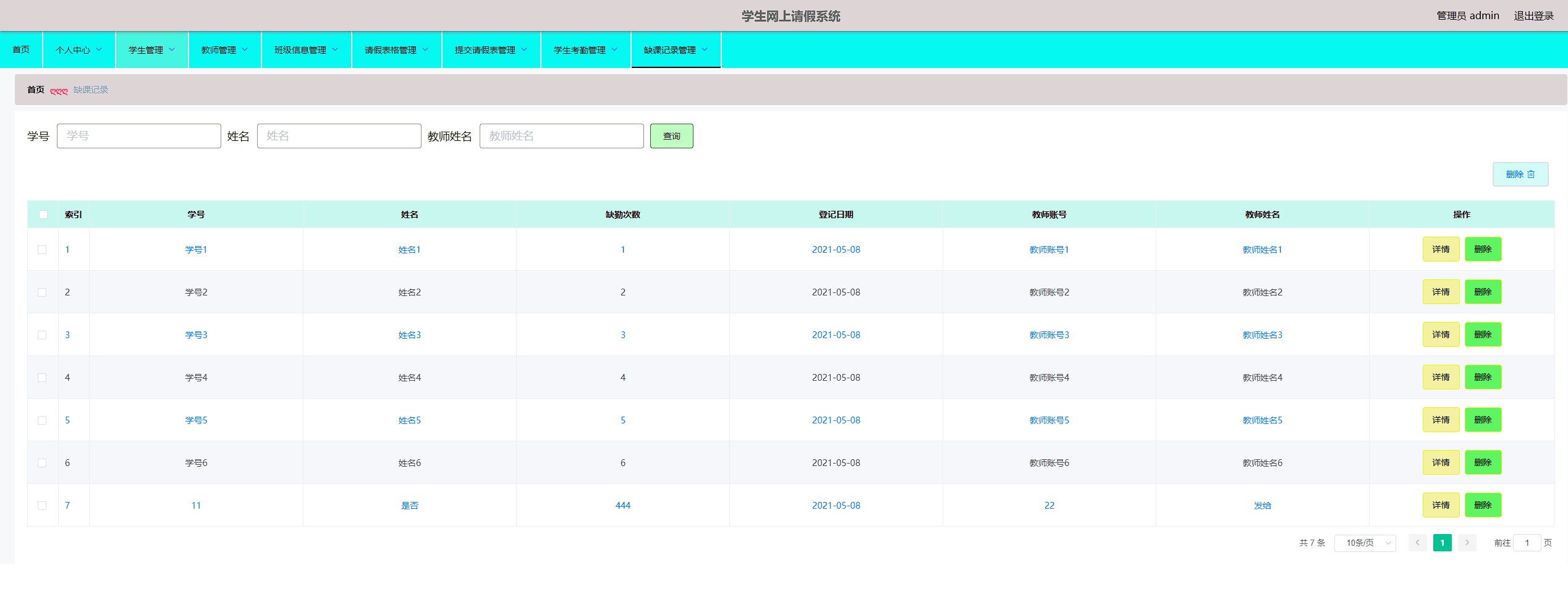 老师端:老师端的页面也是参考管理员设计的,老师是审批权限