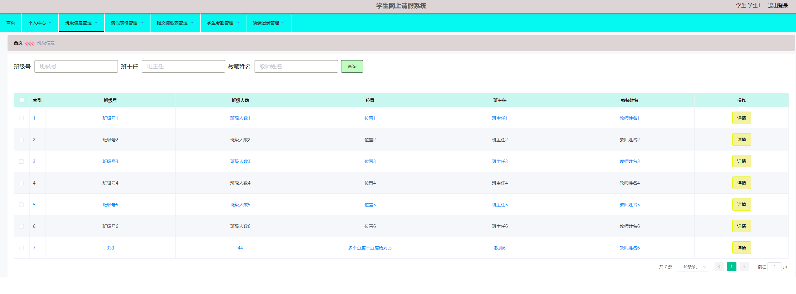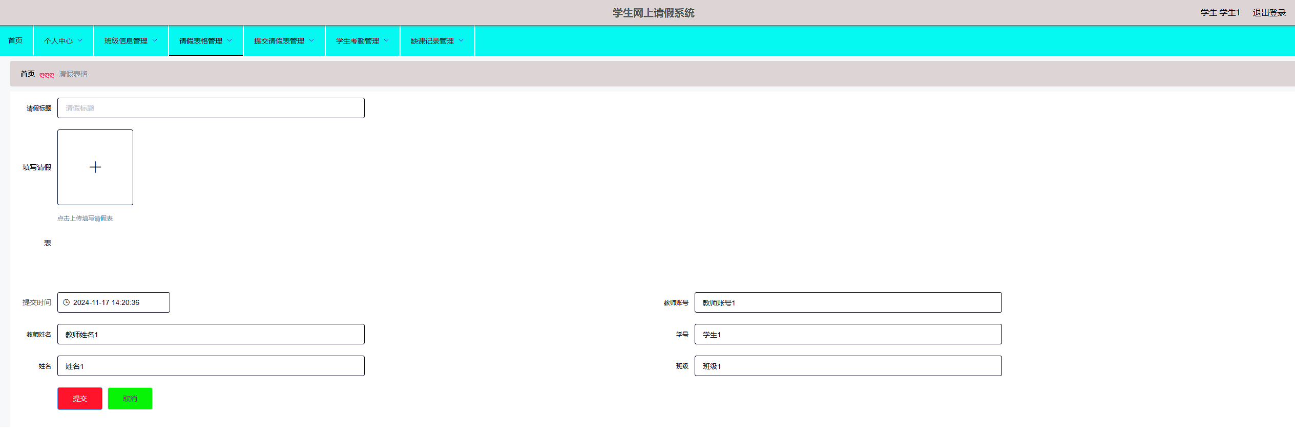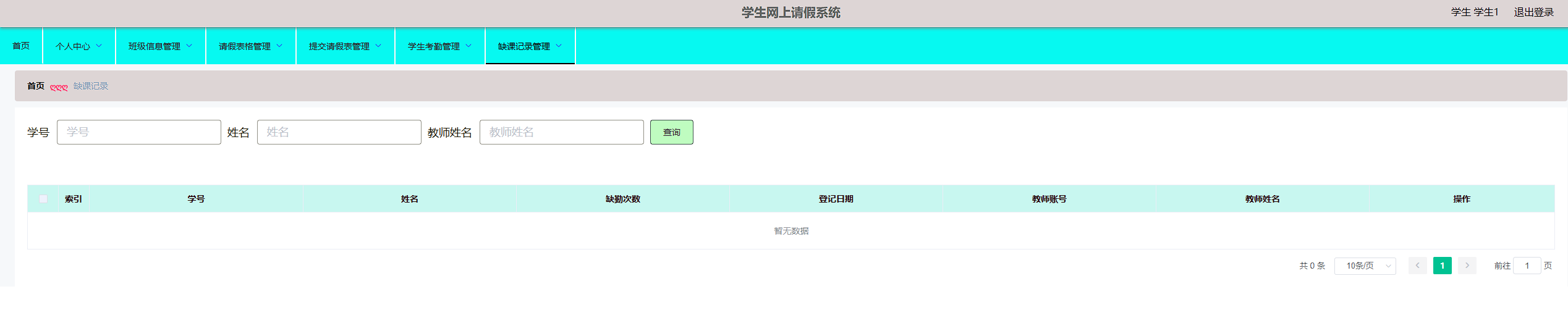 本学生网上请假系统管理员,教师,学生。管理员功能有个人中心,学生管理,教师管理,班级信息管理,请假表格管理,提交请假表管理,学生考勤管理,缺课记录管理。教师功能有个人中心,学生管理,班级信息管理,请假表格管理,提交请假表管理,学生考勤管理,缺课记录管理。学生功能有班级信息管理,请假表格管理,提交请假管理,学生考勤管理,缺课记录管理。因而具有一定的实用性。
