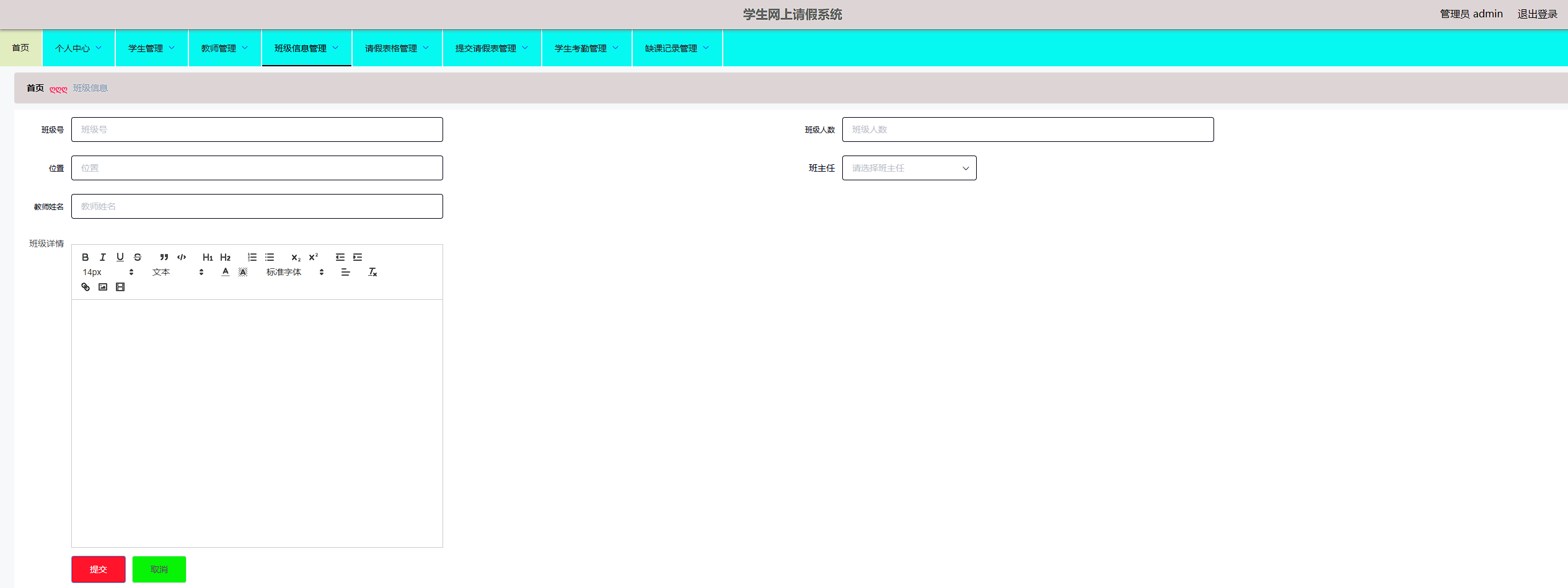 系统管理员可以对班级信息进行添加,修改,删除以及查询操作。