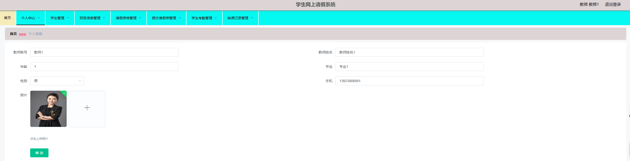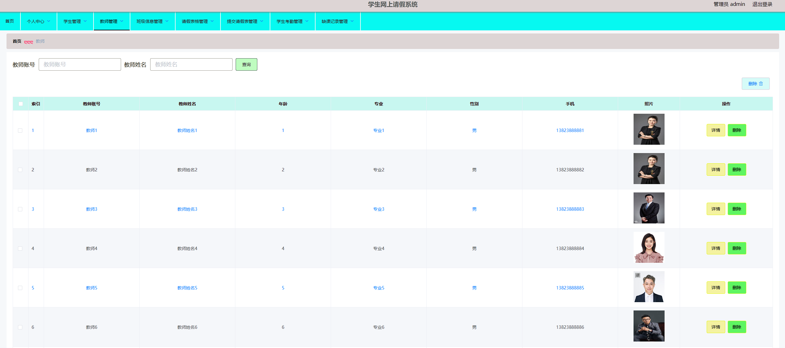 学生网上请假系统的系统管理员可以管理教师,可以对教师信息修改删除以及查询操作。