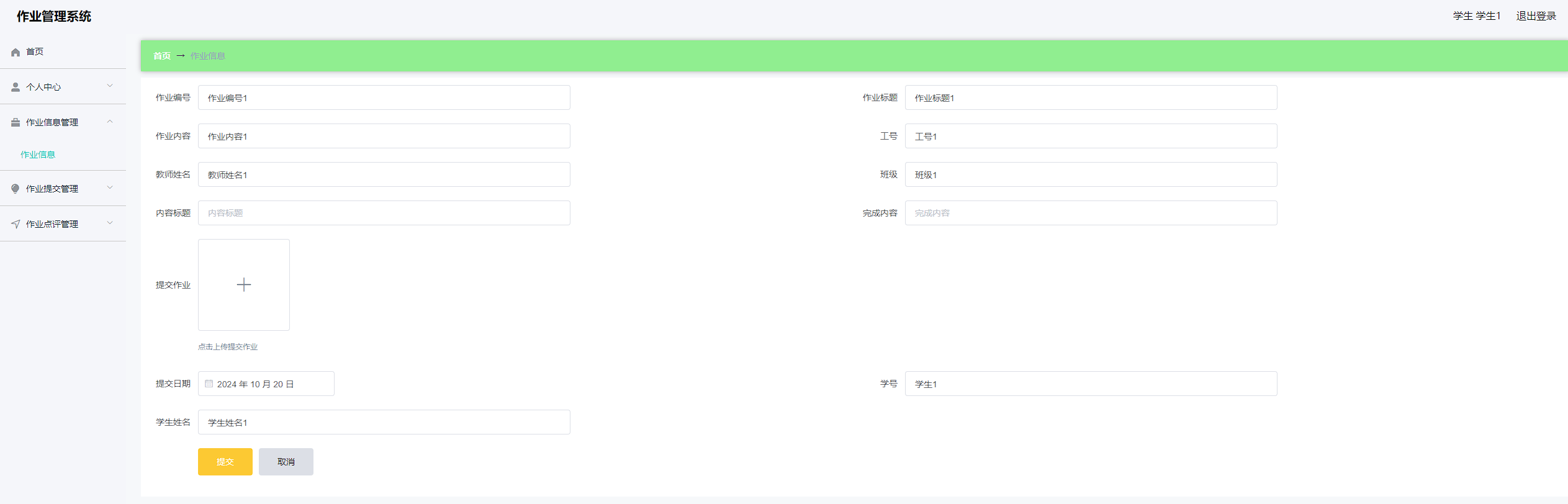 学生提交作业需要先选择教师发布的作业信息后才可以点击提交自己的作业,需要输入自己作业的相关信息。