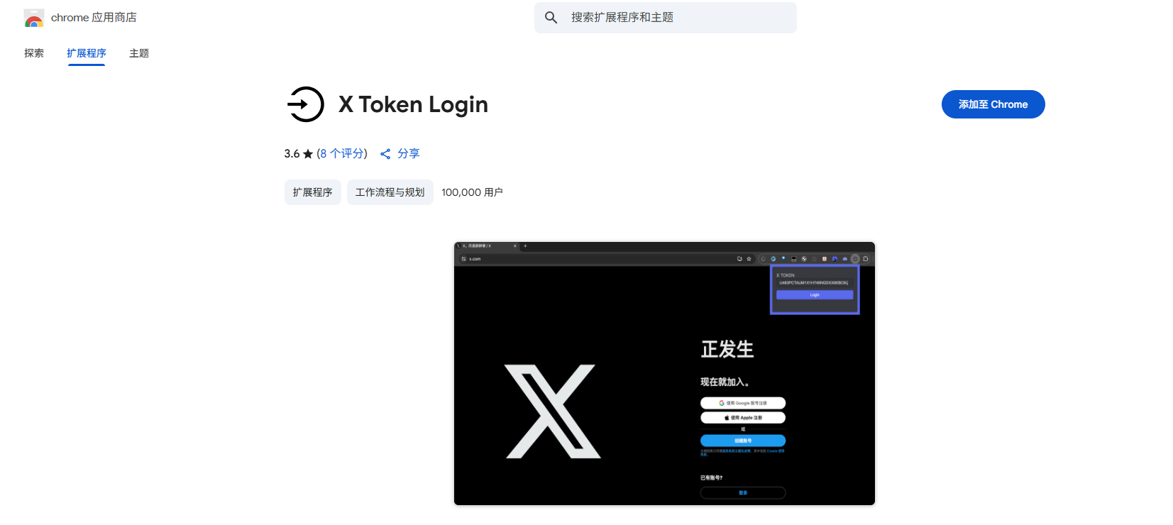 谷歌浏览器在Chrome应用商店搜索X Token Login,然后安装该插件