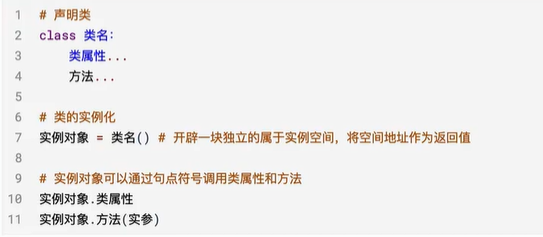 拥有相同属性和功能的具体事物则成为这个类的实例对象。