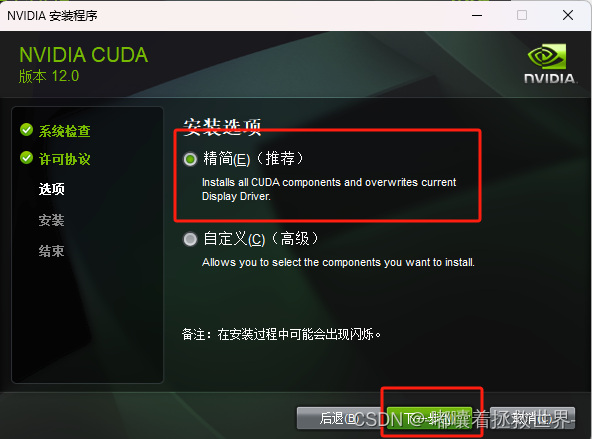 从官网下载对应的CUDA版本,由于我的显卡版本为12.3,我只需要安装小于或者等于12.2都是可以的,因此这里我安装12.0。