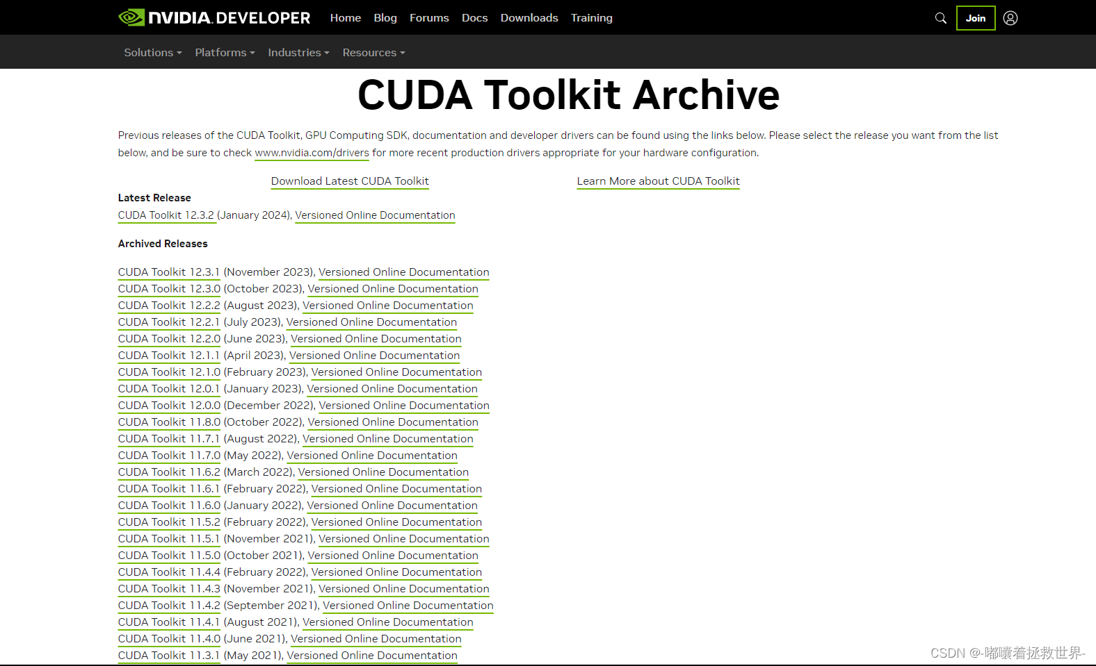 官网地址:CUDA Toolkit Archive | NVIDIA Developer