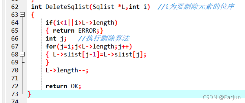 int DeleteSqlist(Sqlist *L,int i) //i为要删除元素的位序