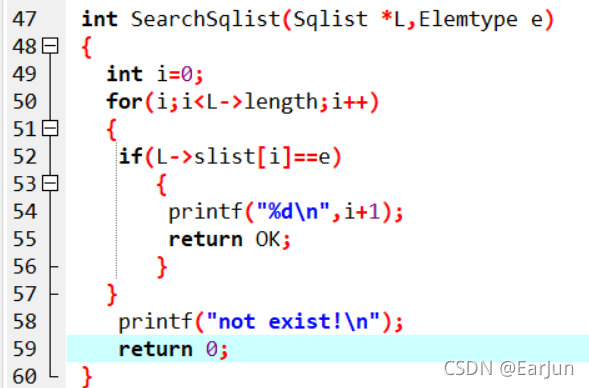 int SearchSqlist(Sqlist *L,Elemtype e); //顺序表查找函数 (输入数值 输入位序)