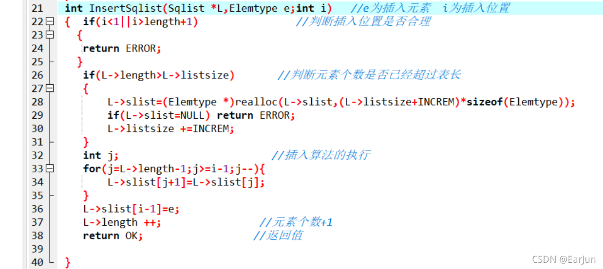 int InsertSqlist(Sqlist *L,Elemtype e,int i) //e为插入元素 i为插入位置