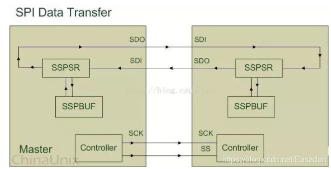 SPI (Serial Peripheral interface),串行外围设备接口;主要应用在EEPROM,Flash,实时时钟(RTC),AD转换器,数字信号处理器和数字信号解码器。