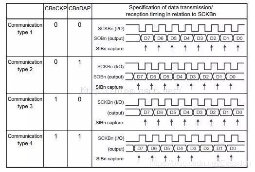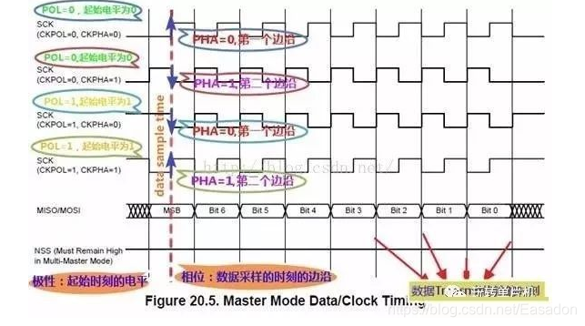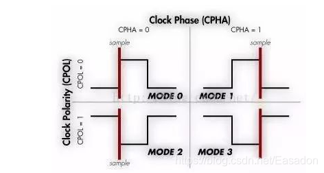 CPOL和CPHA,分别都可以是0或时1,对应的四种组合就是: