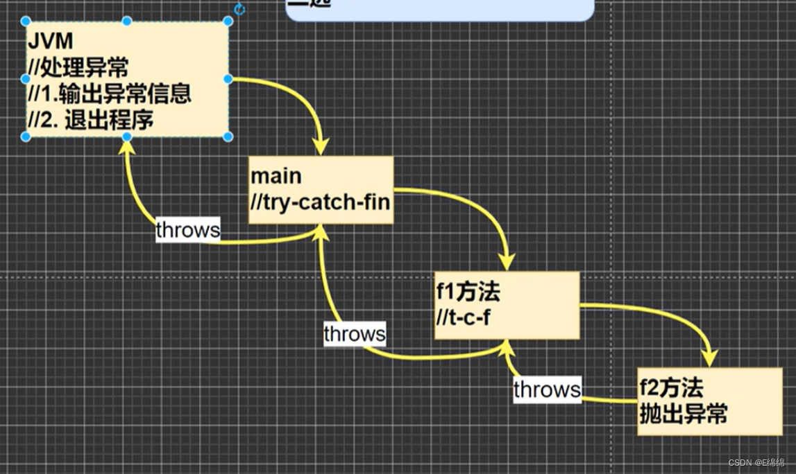 🎯🎯当一个方法使用了throws关键字声明了可能异常时,调用该方法的代码必须要么捕获这些异常,要么继续使用throws关键字将异常继续向上抛出。如下图就是个很好的体现:
