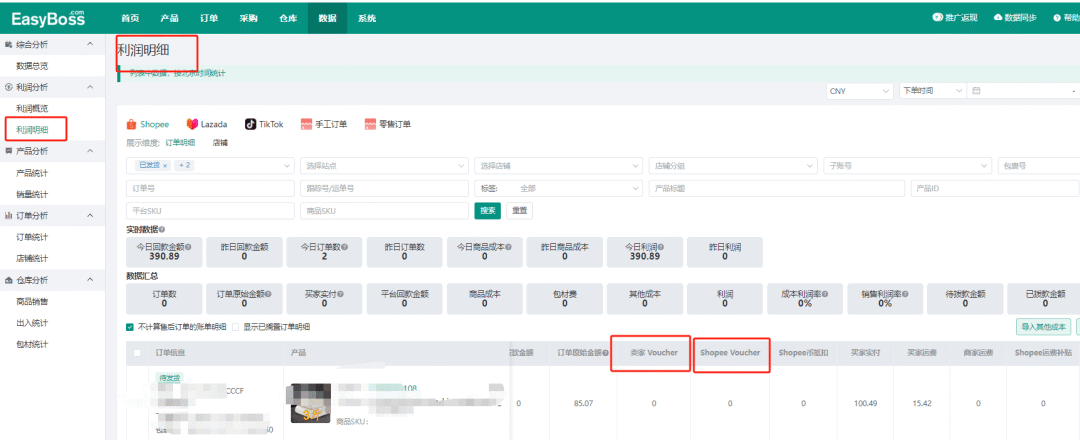 01.Shopee平台导出数据新增字段【卖家 Voucher】、【Shopee Voucher】、【Shopee币抵扣】、【关税】