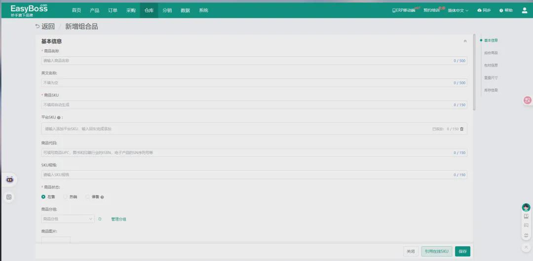 针对卖家自主创建的组合销售策略,EasyBoss还提供组合品的库存管理功能,帮助卖家规避组合品销售时产生的库存混乱问题。