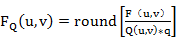 其中FQ(u,v)表示经过量化后的DCT系数;F(u,v)表示量化前的DCT系数;Q(u,v)表示量化加权矩阵;q表示量化步长;round表示归整,即将输出的值取为与之最接近的整数值。
