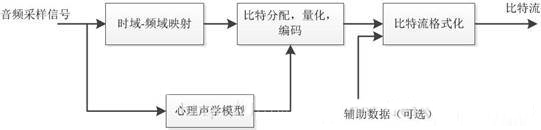 当前数字音频编码领域存在着不同的编码方案和实现方式, 但基本的编码思路大同小异, 如图所示: