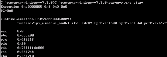 结果:研发人员远程发现用户系统是Win7。谷歌Go语言发布1.21更新时,正式取消支持微软Win7/8及苹果macOS10.13/10.14。目前EasyNVR所用的Golang版本为1.23。当然,如果用户有Win7/8系统的使用需求,可以联系我们处理。