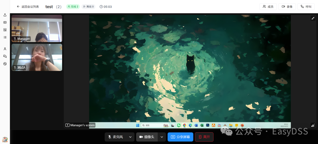 会议管控可视化:实时显示参会人数、时长,支持一键呼叫未入会成员,全程录像可保存,错过会议也能回放追溯细节。