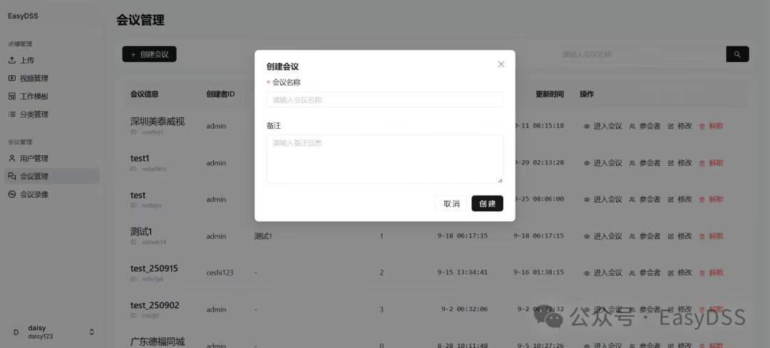 企业跨地域团队、多项目组协作时,常因“会议组织繁琐”“信息传递遗漏”“方案讨论低效”影响进度,新版EasyDSS的协作功能直击这些痛点: